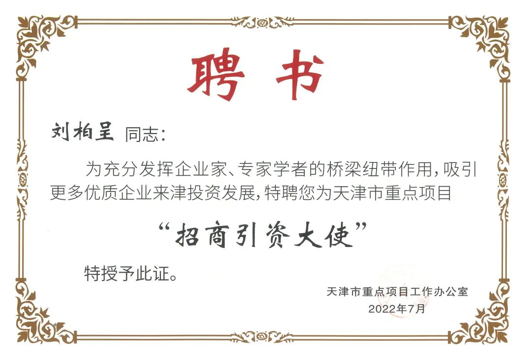 近日,为充分发挥企业家、专家学者的桥梁纽带作用,吸引更多优质企业家来津投资发展,市发改委召开2022年“招商大使”聘任会暨交流座谈会。天津YABO鸭脖物联科技股份有限公司董事长刘柏呈受邀参加座谈会,并受邀担任天津市重点项目工作办公室“招商引资大使”。